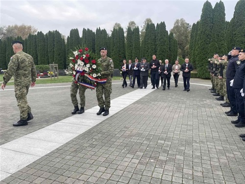 Kod spomen obilježja u sportskoj zračnoj luci Borovo u Vukovaru polaganjem vijenaca te paljenjem svijeća odana...